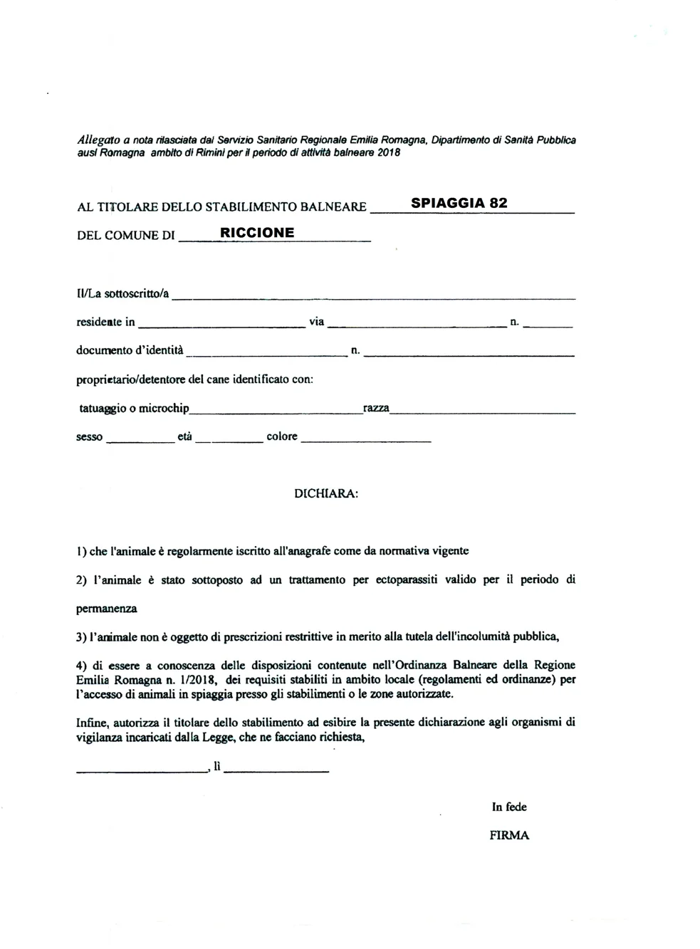 Al tuo arrivo in spiaggia occorre compilare una dichiarazione sanitaria.